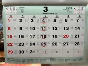 3月のカレンダーです